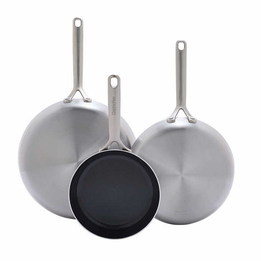 NEW - Costco - GreenPan GP5 Vista 5-ply Stainless Steel Ceramic Non Stick 3-piece Set - Retail $159