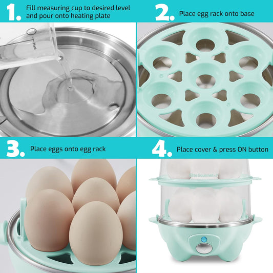 NEW - Elite Gourmet EGC1405M 2-Tiered Rapid Egg Cooker, 5-Egg Poacher, Omelets, Soft, Medium, Hard-Boiled Eggs with Auto Shut-Off and Buzzer, BPA Free, 14 eggs, Mint - Retail $27