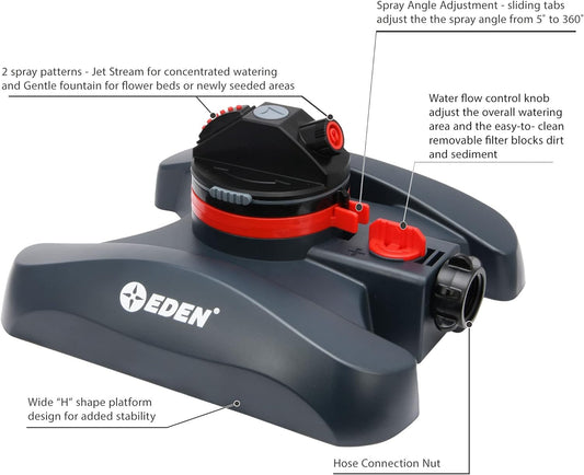 NEW - Eden 94134 2-Pattern Turbo Gear Drive Sprinkler for Yard w/Quick Connect Starter Kit Flow Control with Removable Filter, 360 Degree Coverage - Retail $26