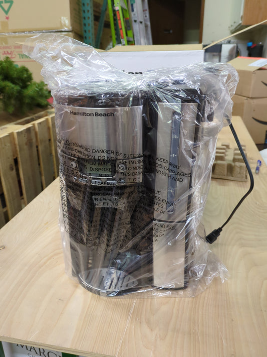 NEW - Hamilton Beach One Press Programmable Dispensing Drip Coffee Maker with 12 Cup Internal Brew Pot, Water Reservoir, Black & Stainless (47950) - Retail $62