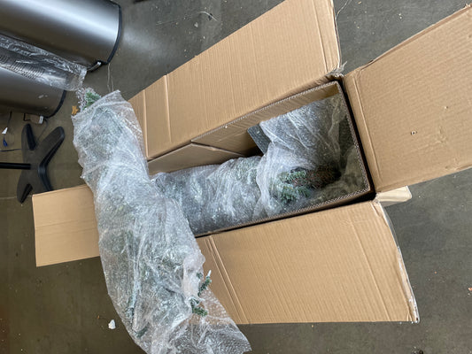 NEW - HGTV Home Collection Pre-Lit Snowy Quinn Valley Ultra Slim Snowy Pinecone Tree, Green, with Clear Incandescent Lights, Plug in, 6ft - Retail $237