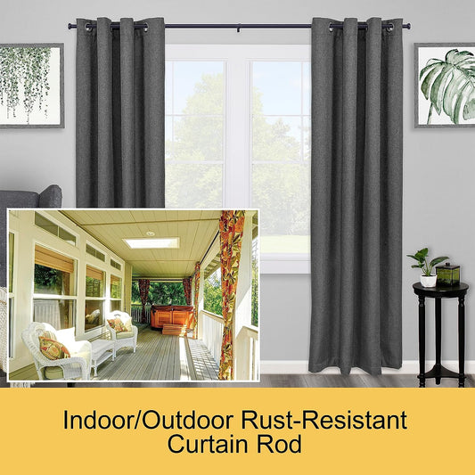 NEW - Kenney KN90001 Weaver Cap End Indoor/Outdoor Rust-Resistant Curtain Rod, 72-144" Adjustable Length, Black Finish, 1" Diameter Steel Tube - Retail $29