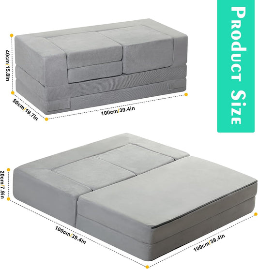 NEW - Kids Couch,4-Piece Fold Out Toddler Play Couch,Floor Sofa Imaginative Furniture Play Set for Bedroom Playroom,Convertible Folding Kids Sofa for Creative Kids(Grey) - Retail $105