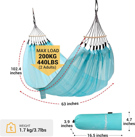 NEW - KingCamp Double Mesh Hammock, Camping Hammock Breathable Portable Outdoor/Indoor Hammocks Tree Hammock for Camping Backpacking, Hiking, Backyard, Patio Support to 440lbs, 2 Tree Straps (Cyan) - Retail $29