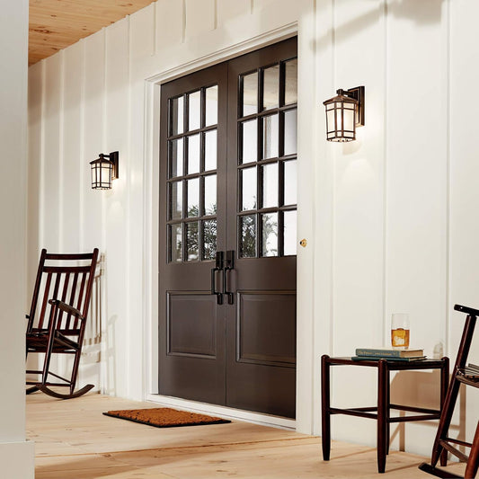 NEW - Kichler Cameron 10.75" 1 Light Outdoor Wall Light with Etched Linen Glass in Prairie Rock - Retail $99