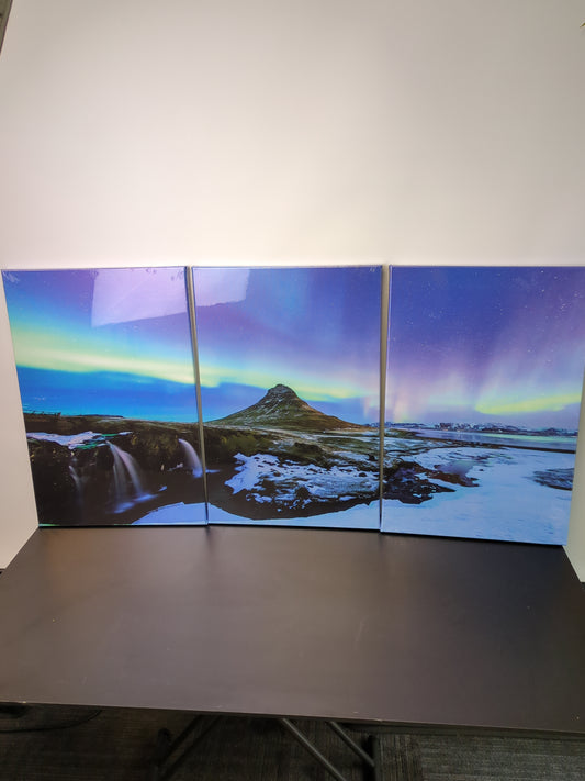 NEW - KREATIVE ARTS 3 Piece Wall Art Painting Northern Lights over Mountain Landscape Wall Pictures Aurora Print Gallery Canvas Wrapped for Home Bedroom Decor 16x24inchx3pcs - Retail $99