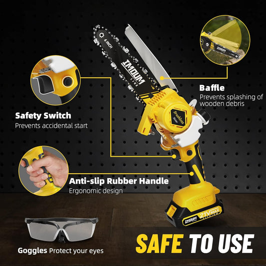 NEW - Mini Chainsaw Cordless 6'' with 2×21V Battery, IMOUMLIVE Brushless Powerful Electric Small Hand Portable Chain Saw with Auto Oiler, Lightweight, 2.2 lbs, Handheld, Easy For Pruning, Cutting, Trimming - Retail $78