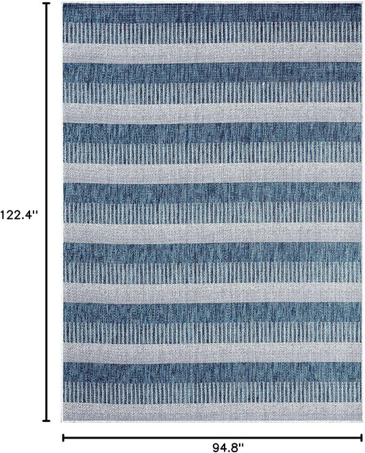 NEW - Nicole Miller New York Patio Country Charlotte Modern Stripe Indoor/Outdoor Area Rug, Aqua/Ivory, 7 ft 9 in x 10 ft 2 in - Retail $244