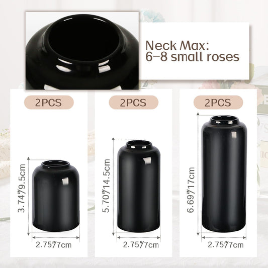 Black Small Flower Vase Set of 6, Glass Bud Vases in Bulk, Decor Centerpiece for Bathroom, Decorative Vases for House Warming, Valentines' Day, Mother's Day, Thanksgiving Day(6 Black)