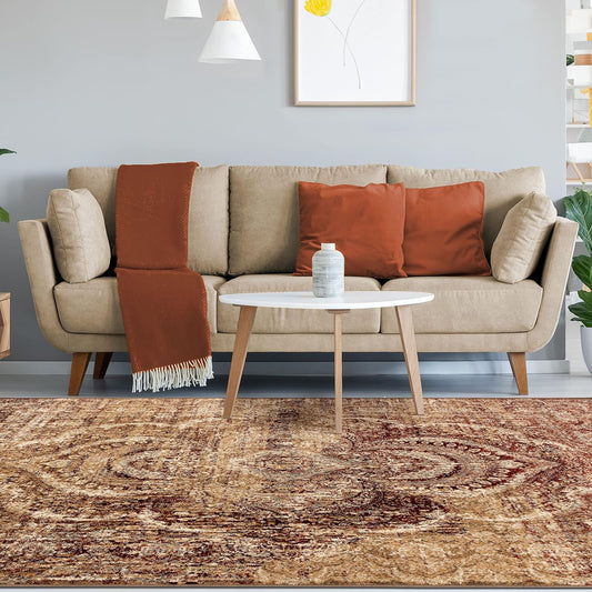 NEW - Superior Indoor Area Rug with Jute Backing, Soft Vintage Floor Decor for Hallway, Entryway, Living/Dining Room, Kitchen, Bedroom, Office, Moroccan Aesthetic, Salford Collection - 4ft x 6ft, Maroon - Retail $33