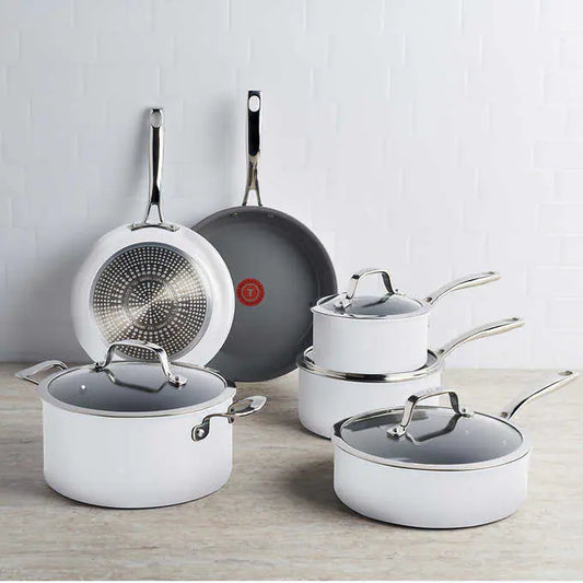 NEW - T-fal WHITE Excellence Ceramic Non-Stick Cookware Set, 10-Piece - Retail $149
