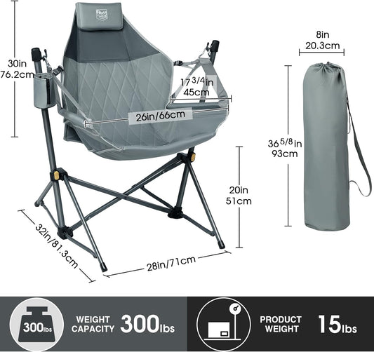 NEW - TIMBER RIDGE Hammock Camping Chair with Adjustable Backrest, Heavy Duty Folding Hammock Chair Supports 300lbs, Portable Hammock Chair for Camping, Travelling and Patio, Grey - Retail $79