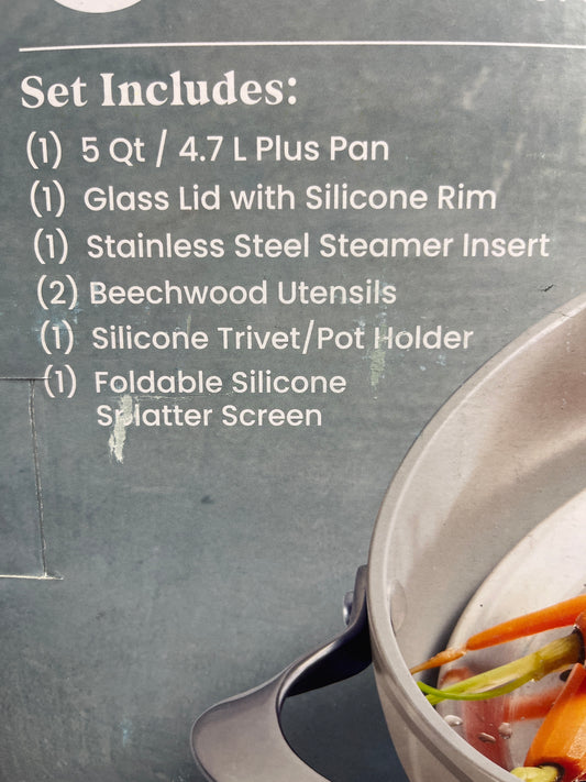 NEW - Tramontina Grey Ceramic Nonstick All In One Plus Pan 7 Piece Set - Retail $54