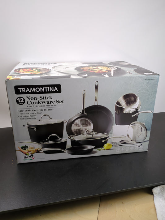 NEW - Tramontina Ceramic Non-Stick 12-piece Cookware Set with Utensils - Retail $139