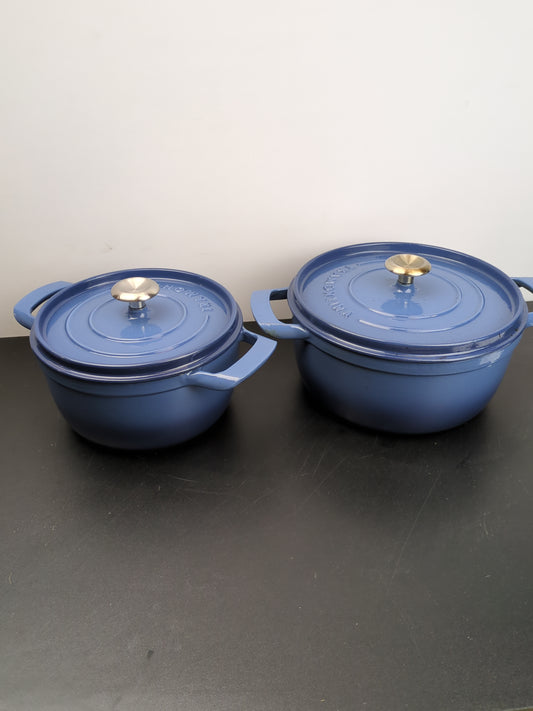 NEW - Tramontina Blue 4-quart & 6-quart Enameled Cast Iron Round Dutch Oven, 2-pack - Retail $69