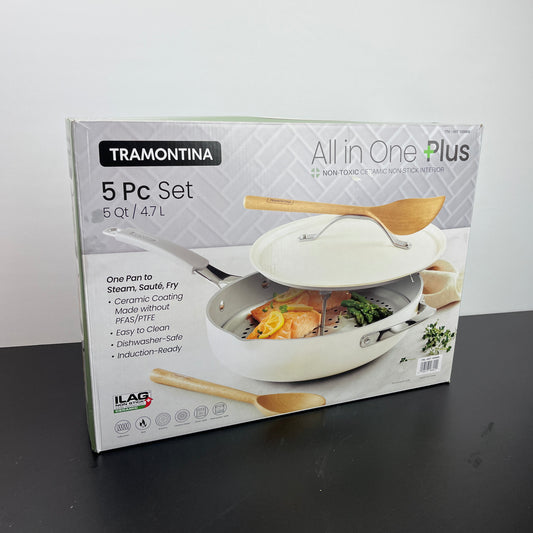 NEW - Tramontina White 5-Quarter All in One Pan Set - Retail $54