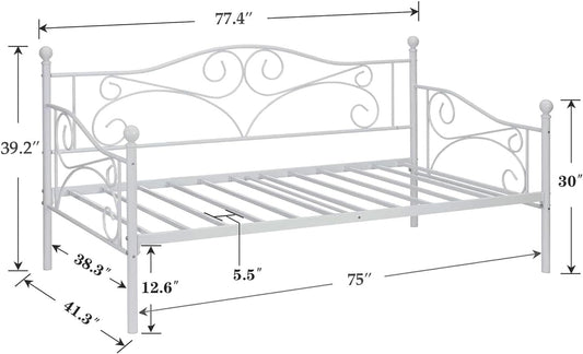 NEW - VECELO TWIN Premium Daybed Metal Bed Frame Twin Size Steel Slat Support/Strong Legs Headboard/Mattress Foundation, Multi-Functional Furniture (Classic Bed) - Retail $118