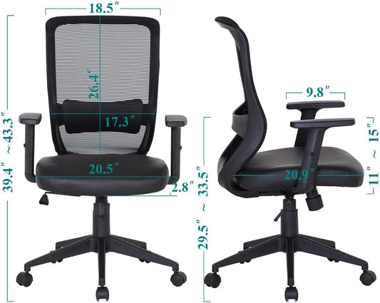 NEW - VECELO Office Computer Desk Chair with PU Padded Seat Cushion, Adjustable Armrest, Ergonomic Lumbar Support for Task Work, Black - Retail $109