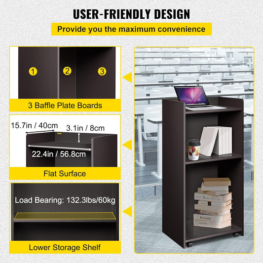 NEW - VEVOR Wood Podium, 23.6" x 47.2", Lecterns with 4 Rolling Wheels - Retail $145