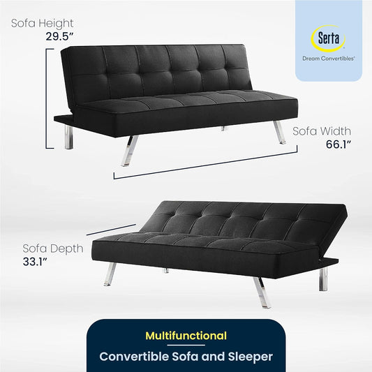 NEW in Box - Serta Rane Convertible Sofa Bed, 66.1" W x 33.1" D x 29.5" H, Black - Retail $133