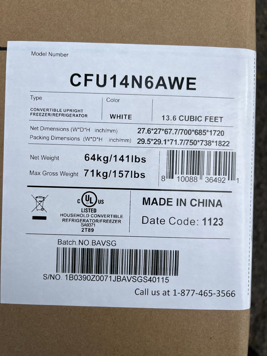 NEW w/ dmg - Hisense 13.6 cu. ft. Garage Ready Upright Freezer - Retail $579