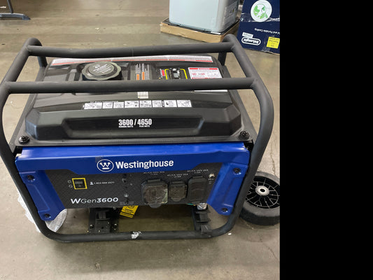 NEW w/ Dent - Westinghouse WGen3600 Portable Generator, 4650 Peak Watts & 3600 Rated Watts, RV Ready 30A Outlet, Wheel & Handle Kit, Gas Powered - Retail $349