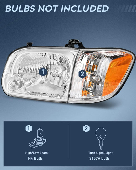 Nilight Headlight Assembly for 2005 2006 Toyota Tundra 4 Door Double Crew Cab 2005 2006 2007 Sequoia Pickup Replacement Chrome Housing Amber Reflector Driver and Passenger Side, 2 Years Warranty - Retail $131