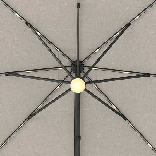 Seasons Sentry 10' Square Grey 2-Tier Solar LED Aluminum Cantilever Umbrella With Base