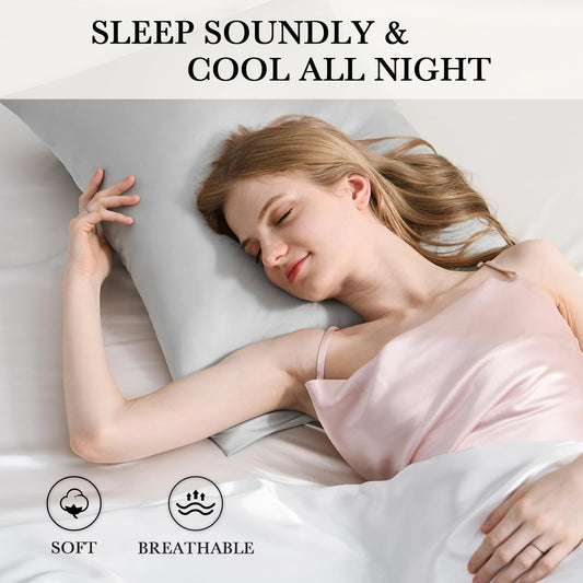 Softhour Premium Satin Pillow Cases with Zipper Closure, King Size 20 x 36 Inches, Silver Gray
