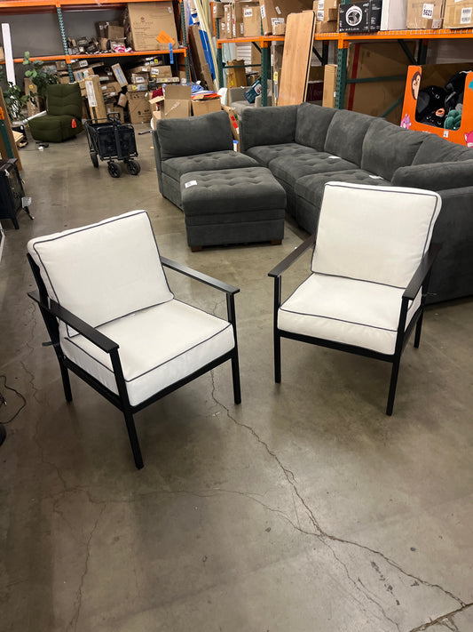 2pc Searsburg Aluminum Deep Seating Outdoor Patio Chair, Club Chair, Accent Chair White/Black