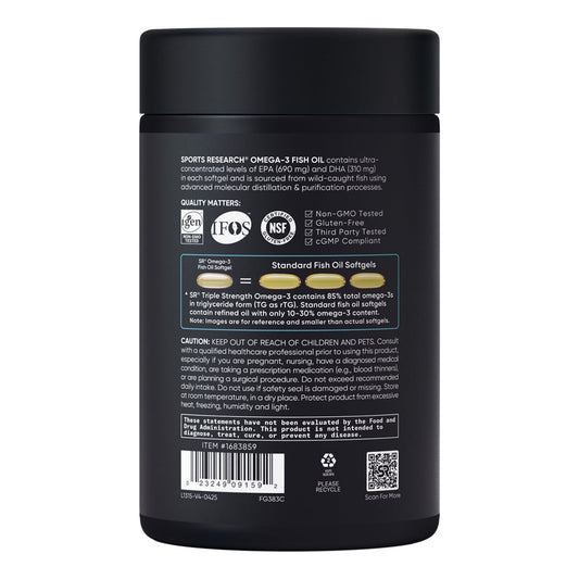 Sports Research Triple Strength Omega-3 Fish Oil, 150 Fish Softgels