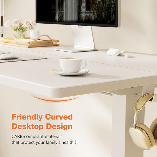 Sweetcrispy Electric Standing Desk - 55 x 24 inch Adjustable Height Sit to Stand Up Desk with Splice Board, Rising Home Office Computer Table with 2 Hook and Wire Hole for Work - Retail $139