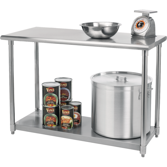 TRINITY NSF Prep/Work Table with Adjustable Shelf, 48"L x 24"W x 34-36"H, Stainless Steel