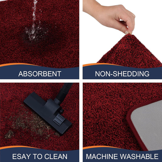 Walensee Indoor Doormat, Front Door Mat for Entrance (20"x32" Red) Machine Washable Entryway Rug Non Slip Dirt Trapper Door Rugs Absorbent Low Profile Shoes Scraper Inside Floor Mats for Entry
