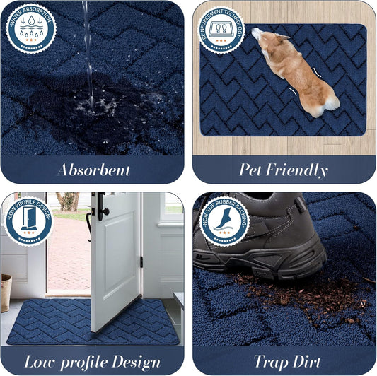 Walensee Indoor Doormat, Front Door Mat for Entrance (24"x35" Navy Blue) Machine Washable Entryway Rug, Non Slip Trapper Door Rugs Absorbent Dirt Low Profile Shoes Scraper Inside Floor Mats for Entry