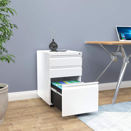 YITAHOME 3-Drawer Mobile File Cabinet with Lock, Office Storage Filing Cabinet for Legal/Letter Size, Pre-Assembled Metal File Cabinet Except Wheels Under Desk -White - Retail $142
