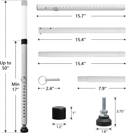 DIIG Sliding Door Security Bar,17.7-50.5inch Adjustable Locking Window Safety Bar with Rubber Tips,Diameter 1inch Window Security Bar for Home Apartment Travel (White)