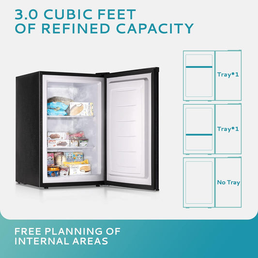 Euhomy Upright freezer, 3.0 Cubic Feet, Single Door Compact Mini Freezer with Reversible Door, Small freezer for Home/Dorms/Apartment/Office (Black) - Retail $219