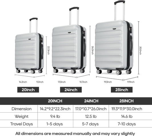 GinzaTravel 3-Piece Luggage Set with TSA Locks, Expandable, and Friction-Resistant in gray - Includes 20", 24" & 28" Spinner Suitcases - Retail $159