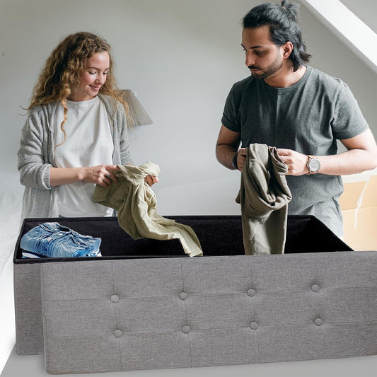 GLAXYFUR 43.3 inches Folding Storage Ottoman Bench Storage Chest Footrest for Bedroom, Entryway and Living Room, Holds up to 660 lb Dark Grey - Retail $45