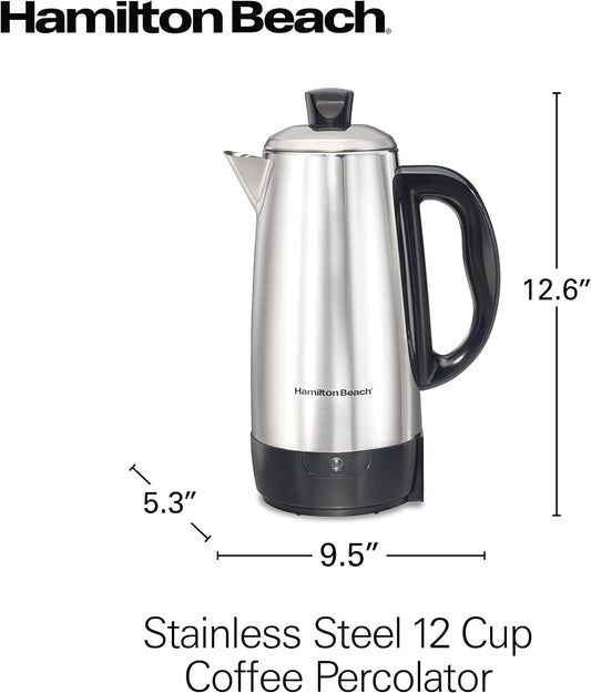 Hamilton Beach 12 Cup Electric Percolator Coffee Maker, Stainless Steel, Quick Brew, Easy Pour Spout (40616R) - Retail $53