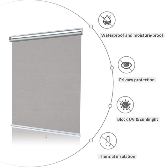 Grey Blackout Shades Roller Shade Window Blinds, Black Out 95% Light & UV, 33 inch Wide x 72 inch High - Retail $28