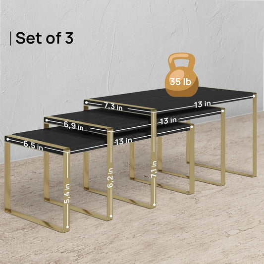Ibyx Premium Kitchen Cabinet Organizer Shelf - Set of 3 Kitchen Counter Shelves - Stackable Shelf Racks for Cabinets - Metal Frame & Engineered Wood (Black Wood, Gold Frame)