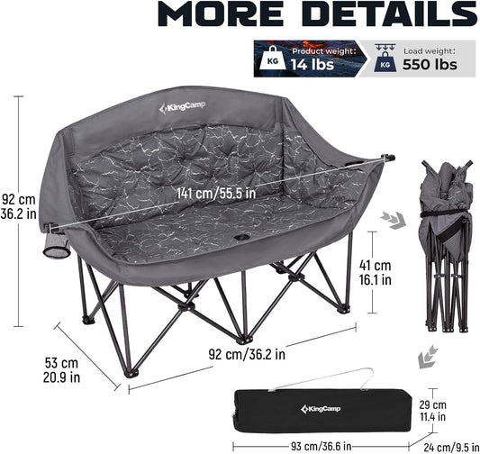 KingCamp Double Camping Chairs Oversized for Adults, Folding Padded Loveseat Campig Chair,Camping Couch with Cup Holder Wine Glass Holder,Support 440 lbs for Outdoor Lawn Beach Travel,Volcapetra - Retail $120