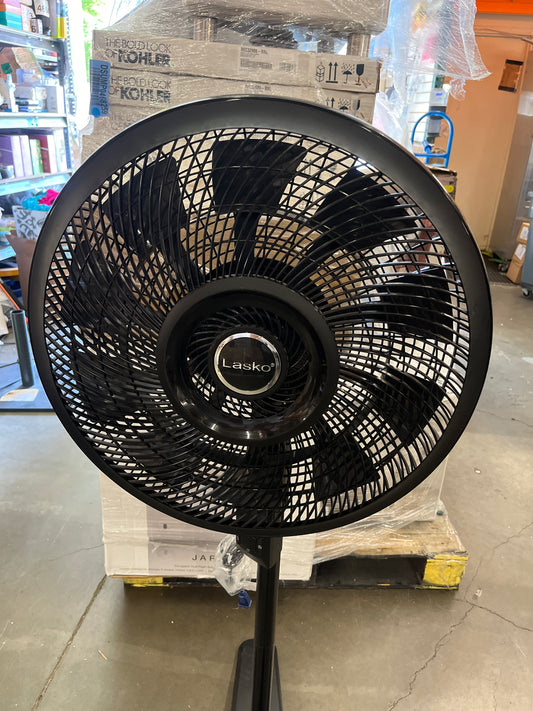 Lasko Oscillating Cyclone Pedestal Fan, Adjustable Height, Timer, Remote Control, 3 Speeds, for Bedroom, Living Room, Home Office, 18in, Black - Retail $44