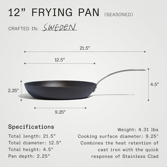 Made In Cookware - Seasoned 12" Blue Carbon Steel Frying Pan - (Like Cast Iron, but Better) - Professional Cookware - Crafted in Sweden - Induction Compatible