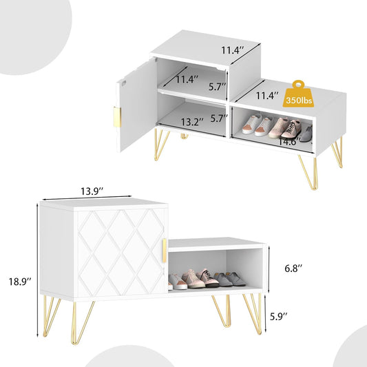 yoyomax Storage Bench with 2 Compartments & Adjustable Shelf, Holds up to 350lb Shoe Rack for Entryway/Hallway(30in, White)