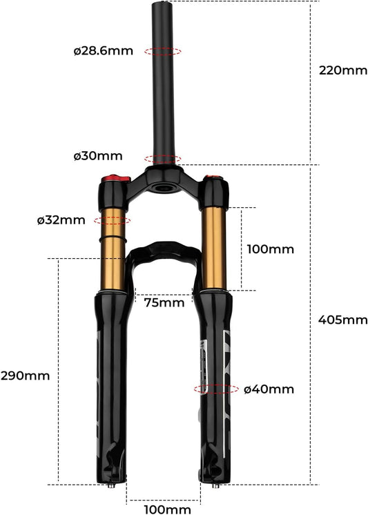 BOLANY 24inch Bike Suspension Air Fork 28.6mm(1-1/8inch)*220mm Thread-Less Straight Steerer 9mm Disc Brake Version MTB Front Fork 100/135mm Travel - Retail $120