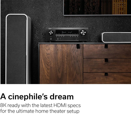 Denon AVR-S760H 7.2 Ch AVR - 75 W/Ch (2021 Model), Advanced 8K Upscaling, Dolby Atmos Height Virtualization, DTS Virtual:X & More, Built-in HEOS, Amazon Alexa Voice Control