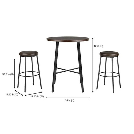 Black Metal 3 Piece Dining Set with Chocolate Wood Top (36 in. W x 42 in. H)